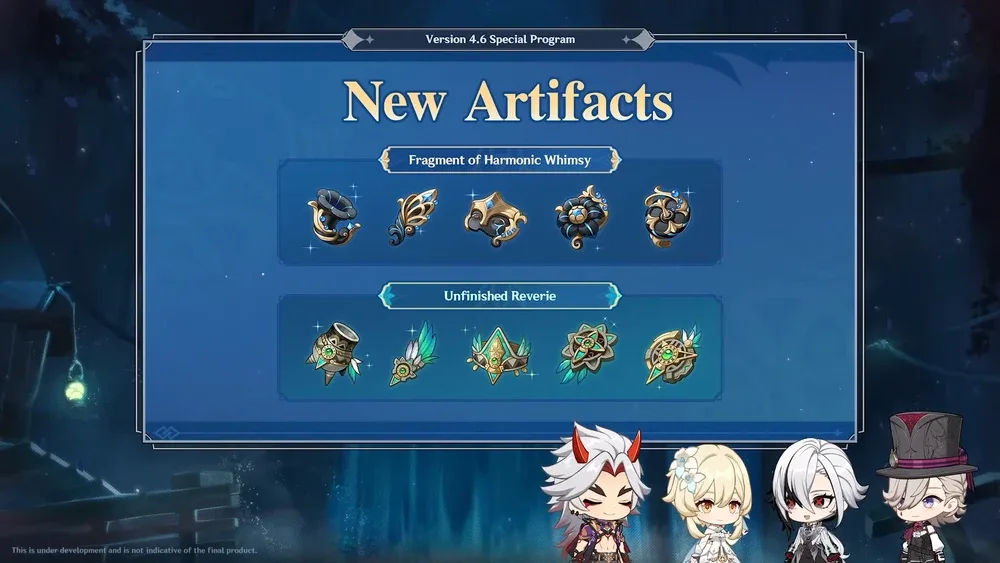 Two new artifact sets have been released, these being ‘Unfinished Reverie’ and ‘Fragment of Harmonic Whimsy’, both of which can be obtained from the new ‘Faded Theater’ domain in Petrichor. Both new sets feature the two-piece bonus of ATK +18%, however their four-piece bonuses differ.
